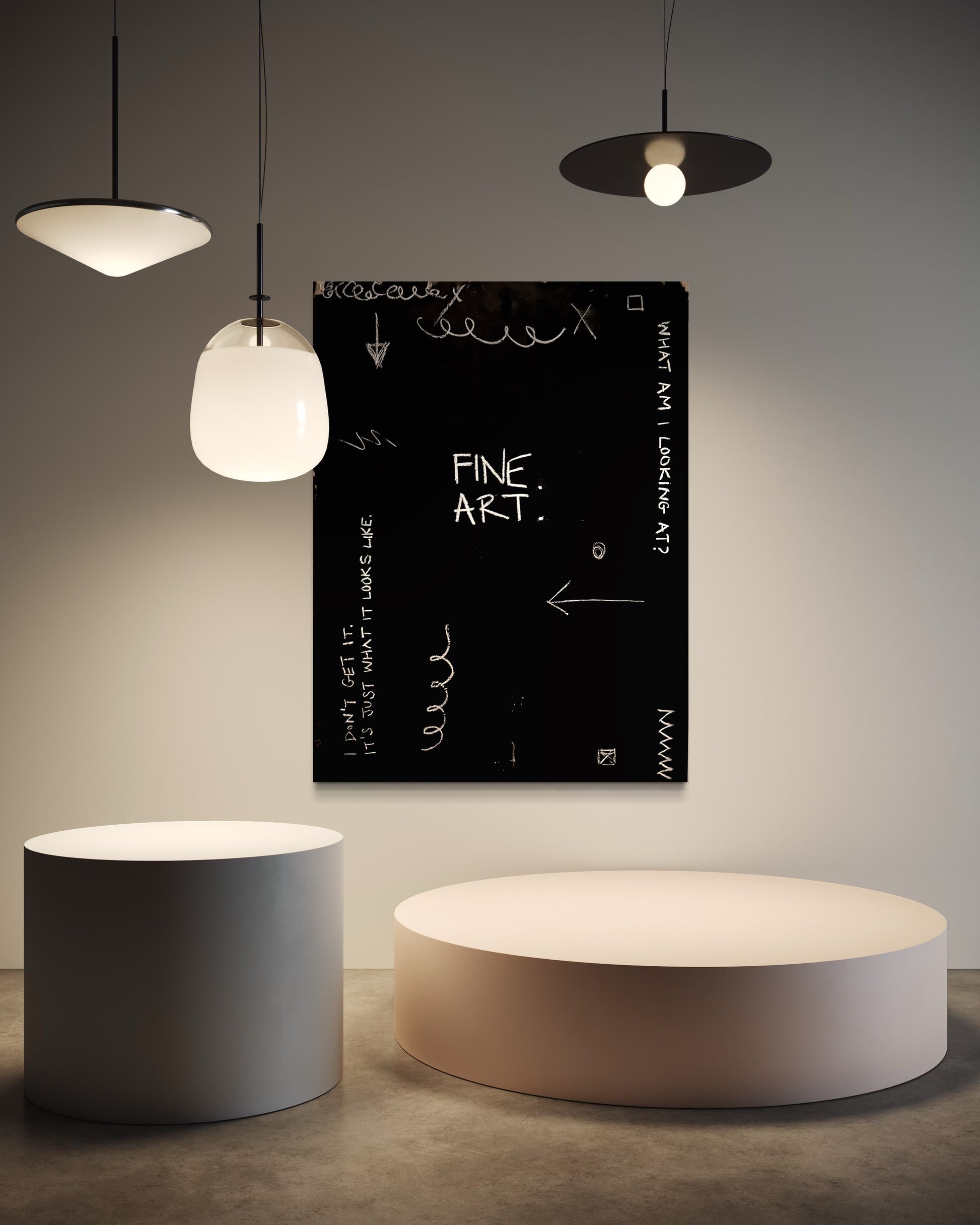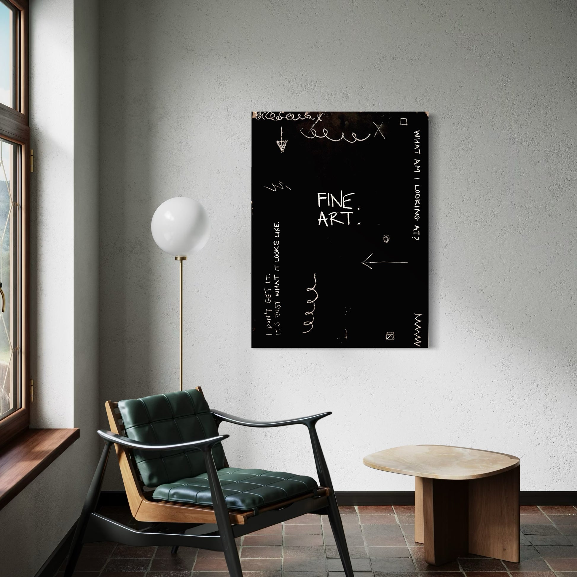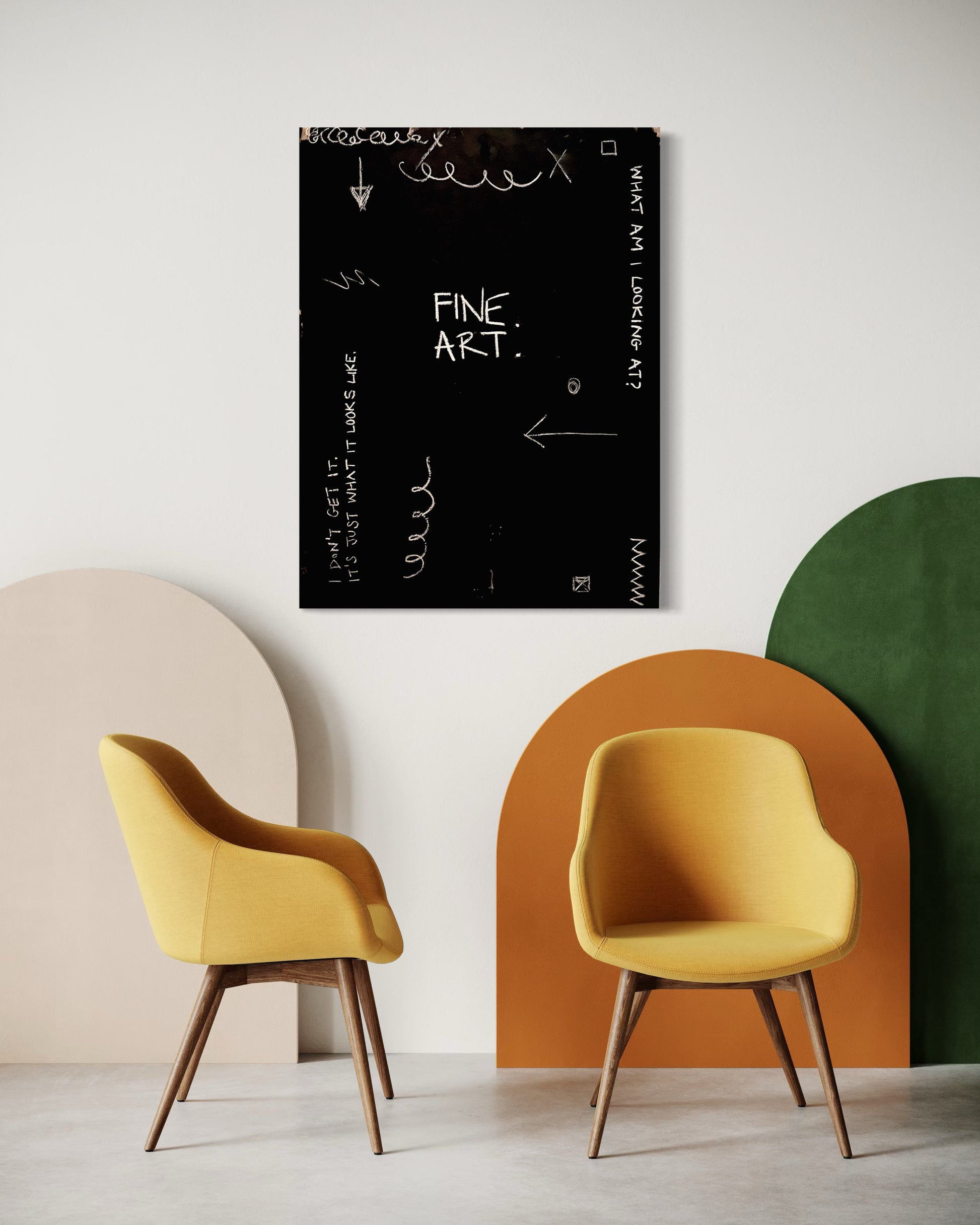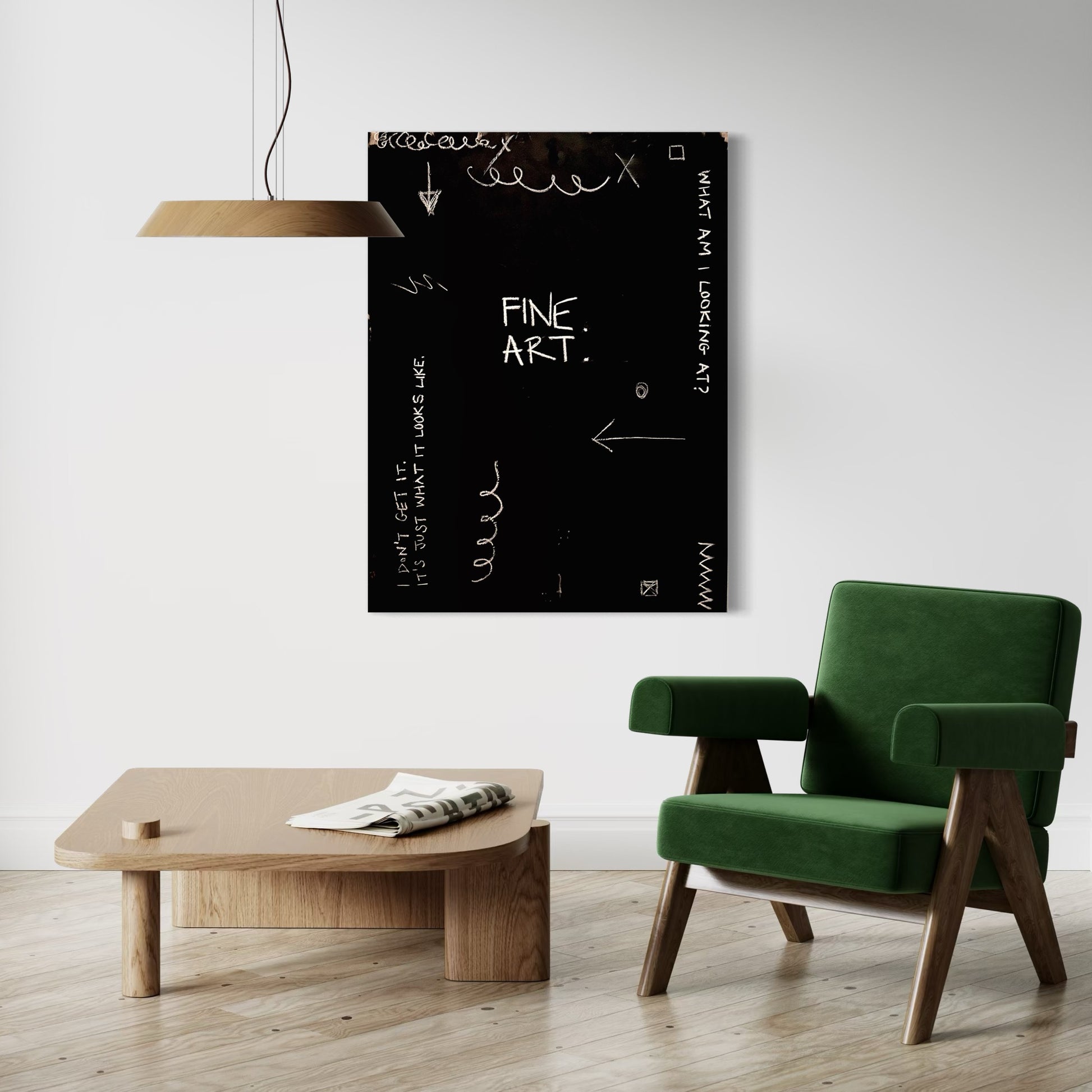 I just adore this piece! I used acrylic paint, charcoal, and chalk on wood panel. The piece is 36“ x 48“. I love playing with the phrase “Fine Art” and the response people have to fine art.